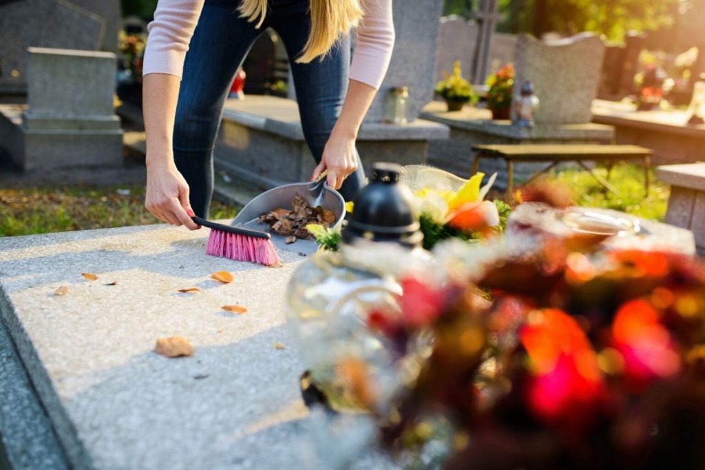 Тщательная уборка мусора, опавшей листвы и старых венков.